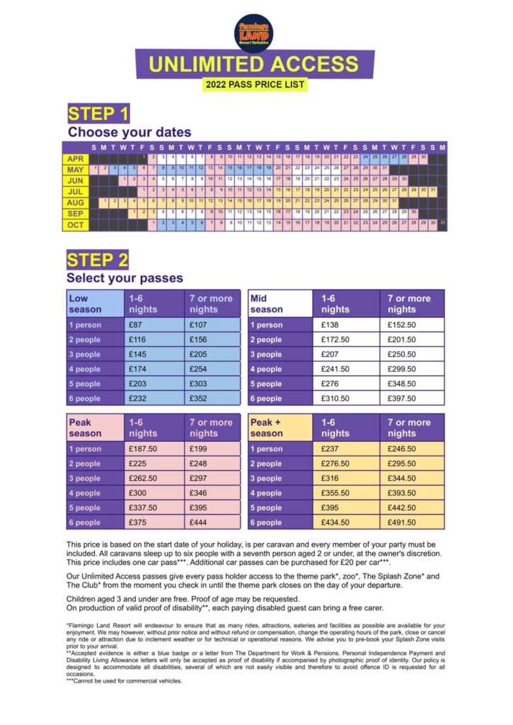 All Access Passes are purchased direct from Flamingo Land and include the full Theme Park and Zoo, Swimming, Sauna, Gym, access to the Golf course, Laundrette, Holiday Village Supermarket, Arcades, All evening Entertainment including Bingo and all the beautiful